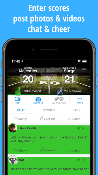 우리는 점수, 사진, 비디오를 공유하고 전 세계 팬들과 채팅할 수 있는 팬 중심의 소셜 플랫폼입니다.